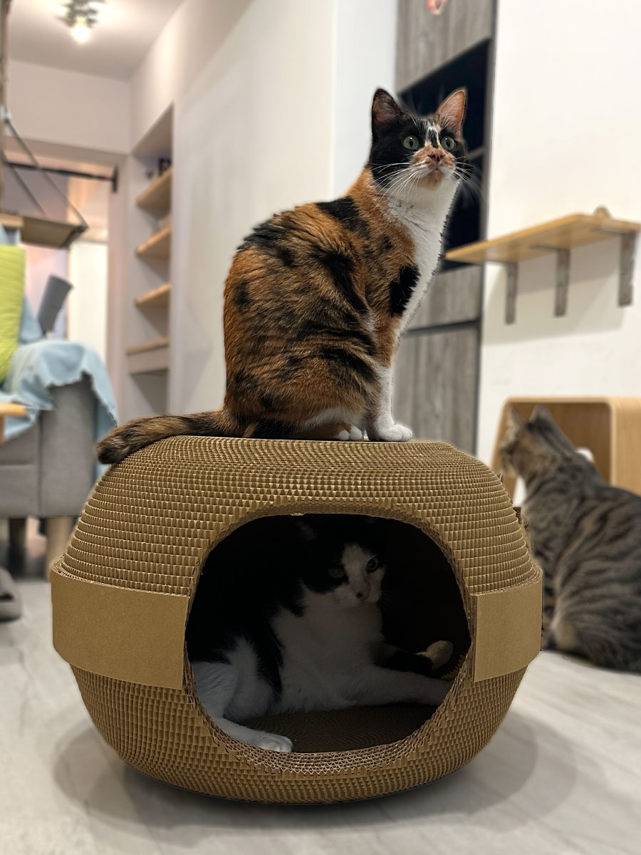 它既是貓窩,也是抓抓板,